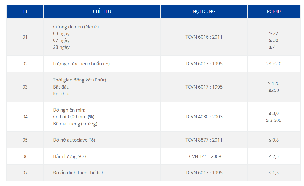 Chất lượng cao, ổn định, cường độ ban đầu phát triển nhanh, độ mịn và hàm lượng khoáng Silicat cao, hàm lượng kiềm và vôi tự do thấp, thời gian đông kết hợp lý, có khả năng chống xâm thực tốt, bền trong môi trường nhiễm phèn, nhiễm mặn.